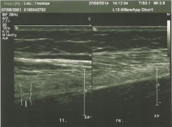 li. ein normaler Muskel re. geschädigter Muskel meines Sohnes